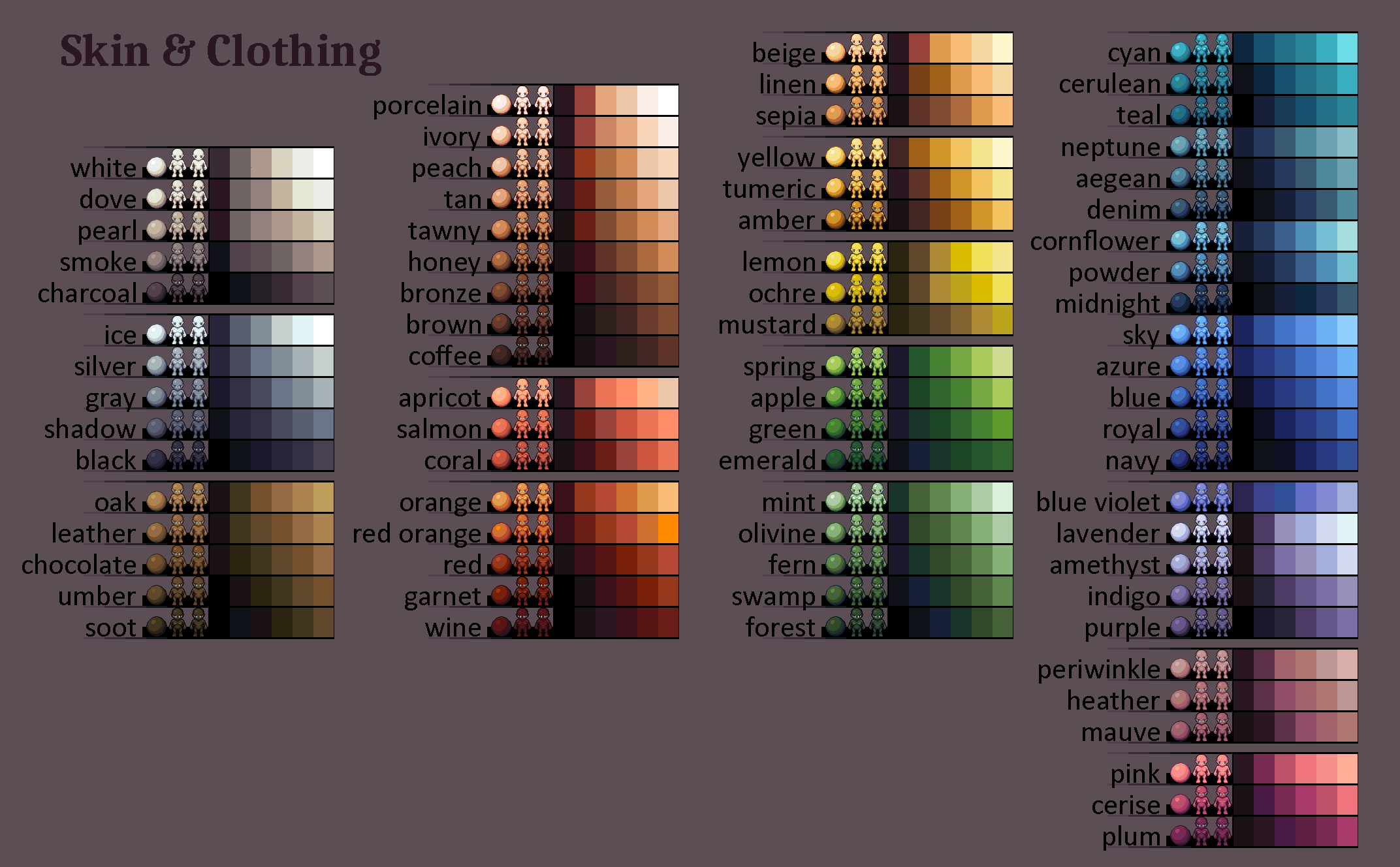To avoid hotspots, it's recommended to design your initial item using the palette with the greatest contrast between the darkest and lightest color. In the case of the clothing palettes, this is white